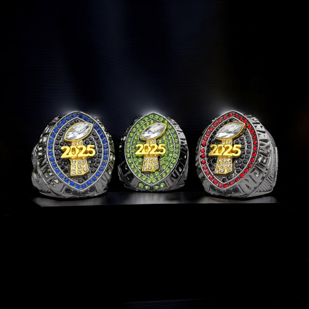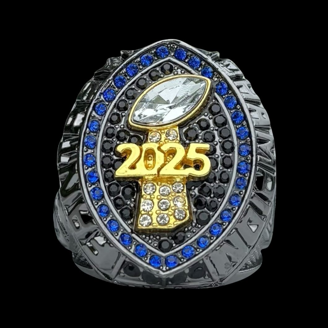 Premium 2025 FANTASY FOOTBALL RING Gunmetal + Gold (Blue Stones)